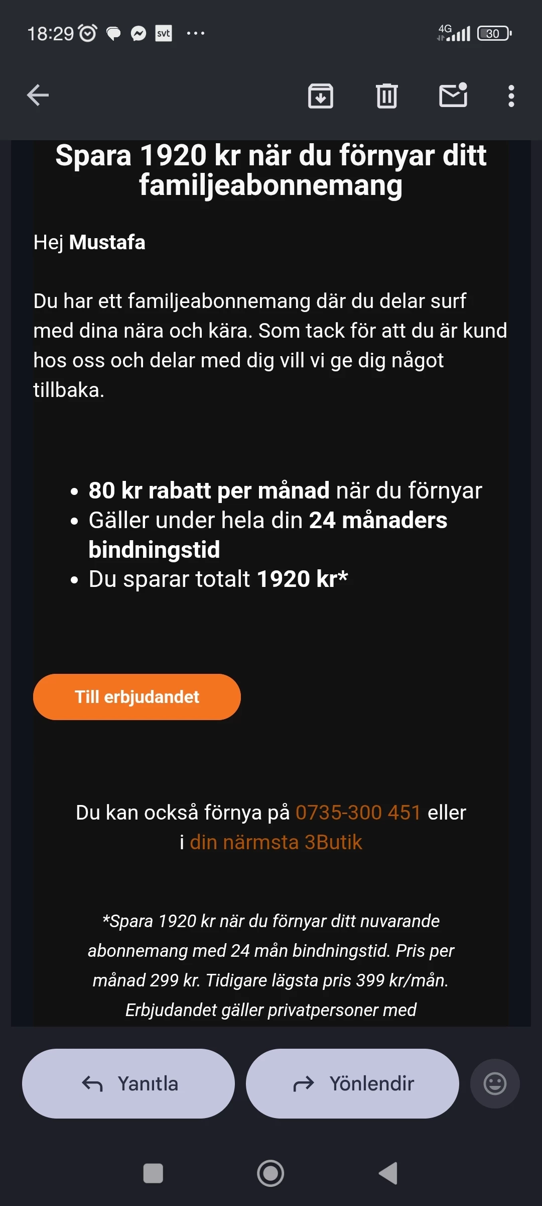 Ni skickade till mig en mejl om en 80 kr Rabat. Men när jag trycker länk kan inte jag koppla Rabat. Jag skickar till er en bilden om rabat mejl. Kan ni svara mig snabbt. Tackar 🙏