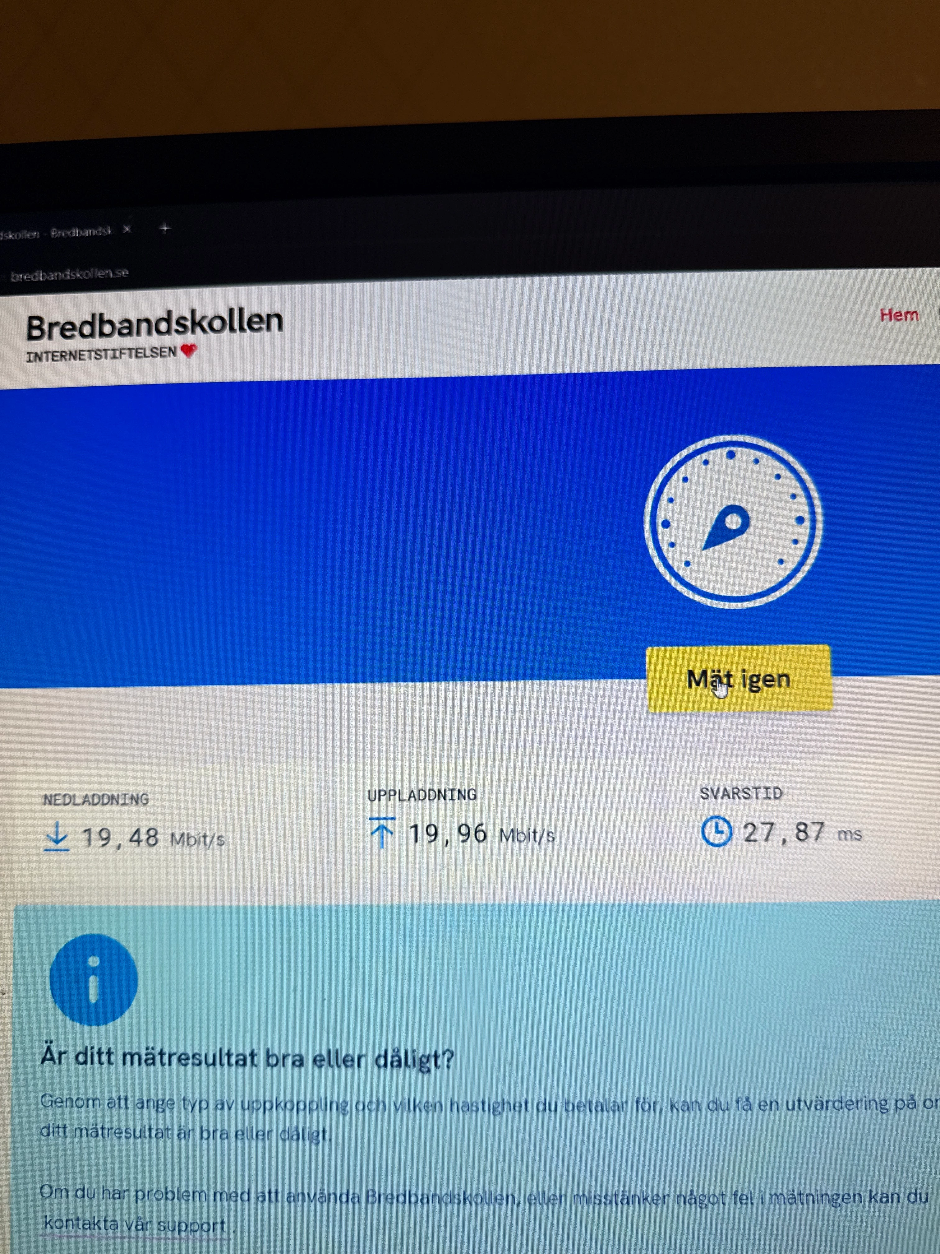 Hej jag blev lovad 1000 upp och 1000 nerladdning men kommer inte ens över 20 Mbit/s använder till och med internett sladd…