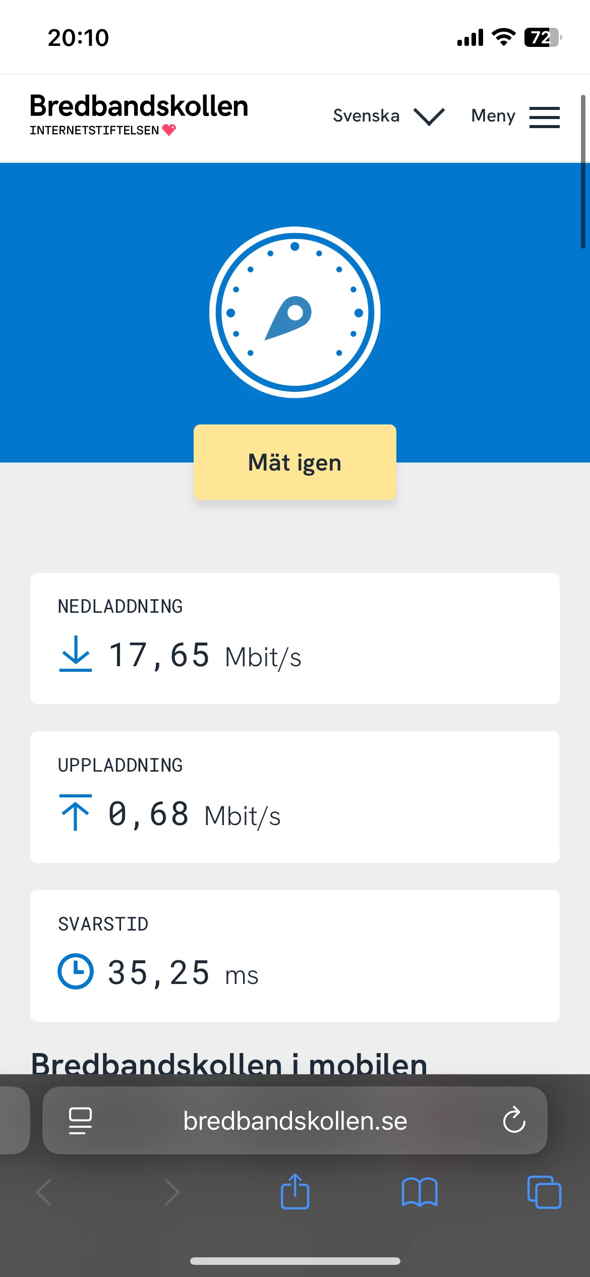 @Slim97 Hm, det ser bra ut. Har du fönster åt ett annat håll, har du möjlighet att placera routern där istället för att se om hastigheten blir bättre?